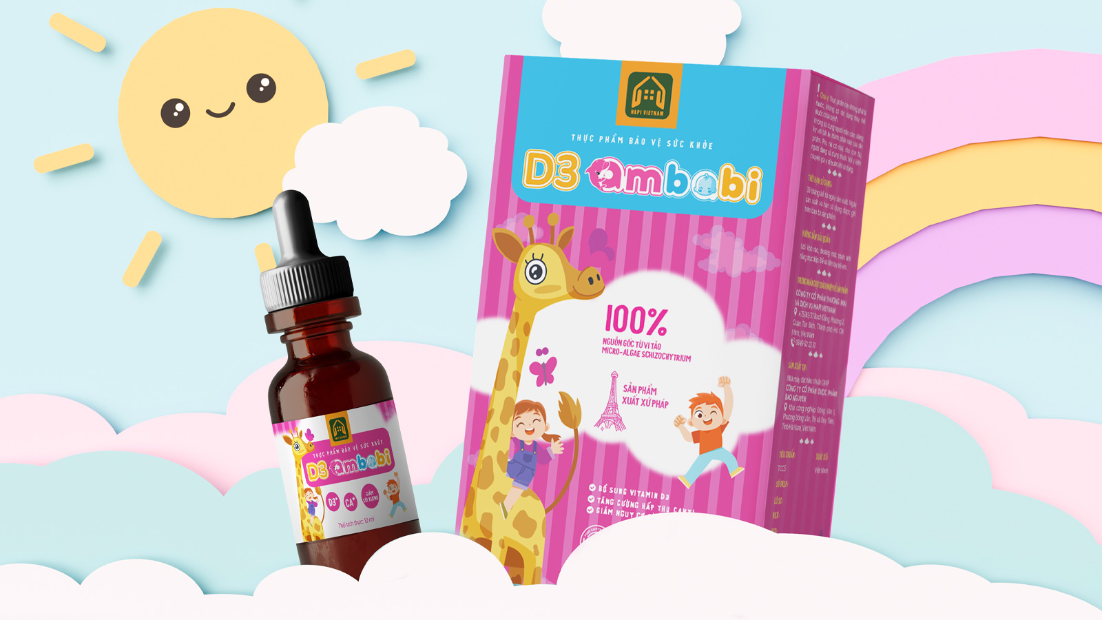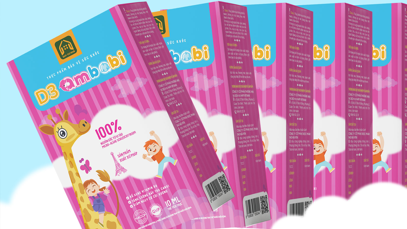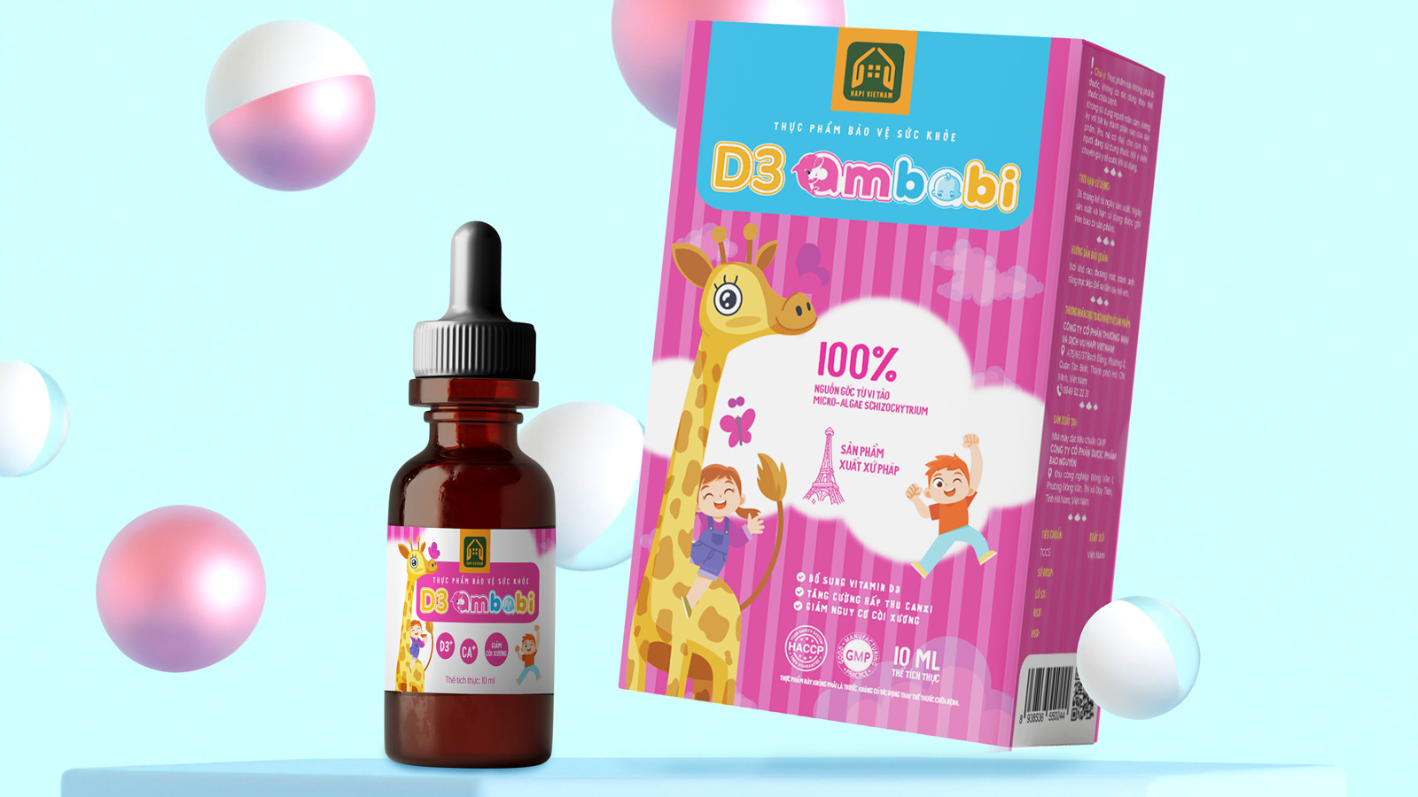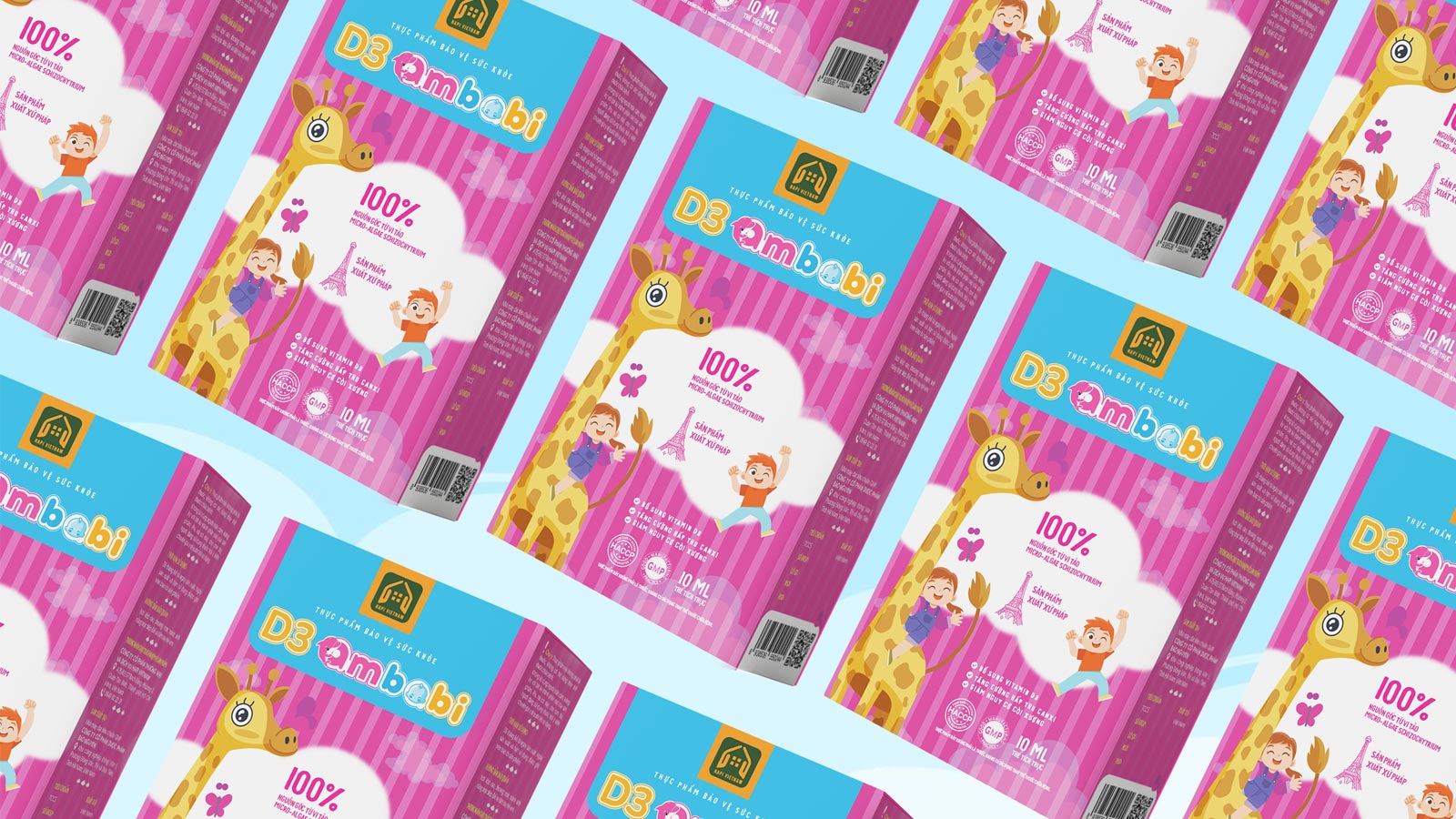 Kết quả đạt được: Bao bì đã định vị thành công Ambabi là một sản phẩm thân thiện, đáng yêu trong mắt trẻ và là một lựa chọn an toàn, khoa học trong tâm trí phụ huynh. Thiết kế không chỉ giúp sản phẩm nổi bật tại nhà thuốc mà còn khiến việc bổ sung D3 mỗi ngày trở thành một khoảnh khắc vui vẻ.