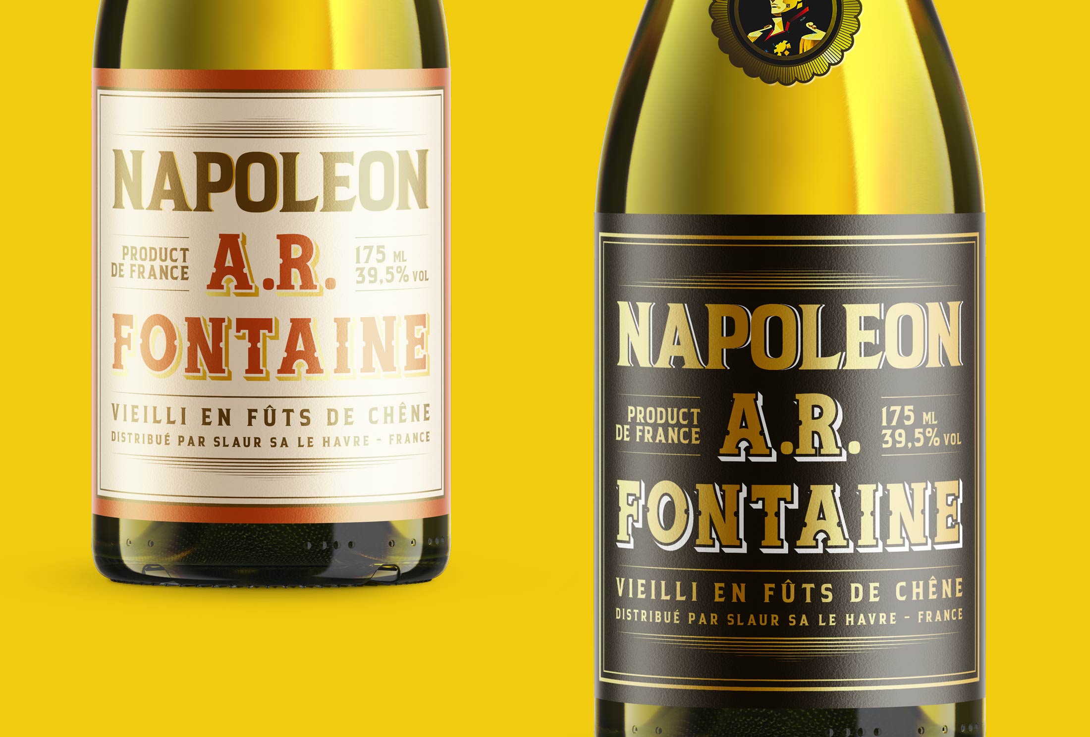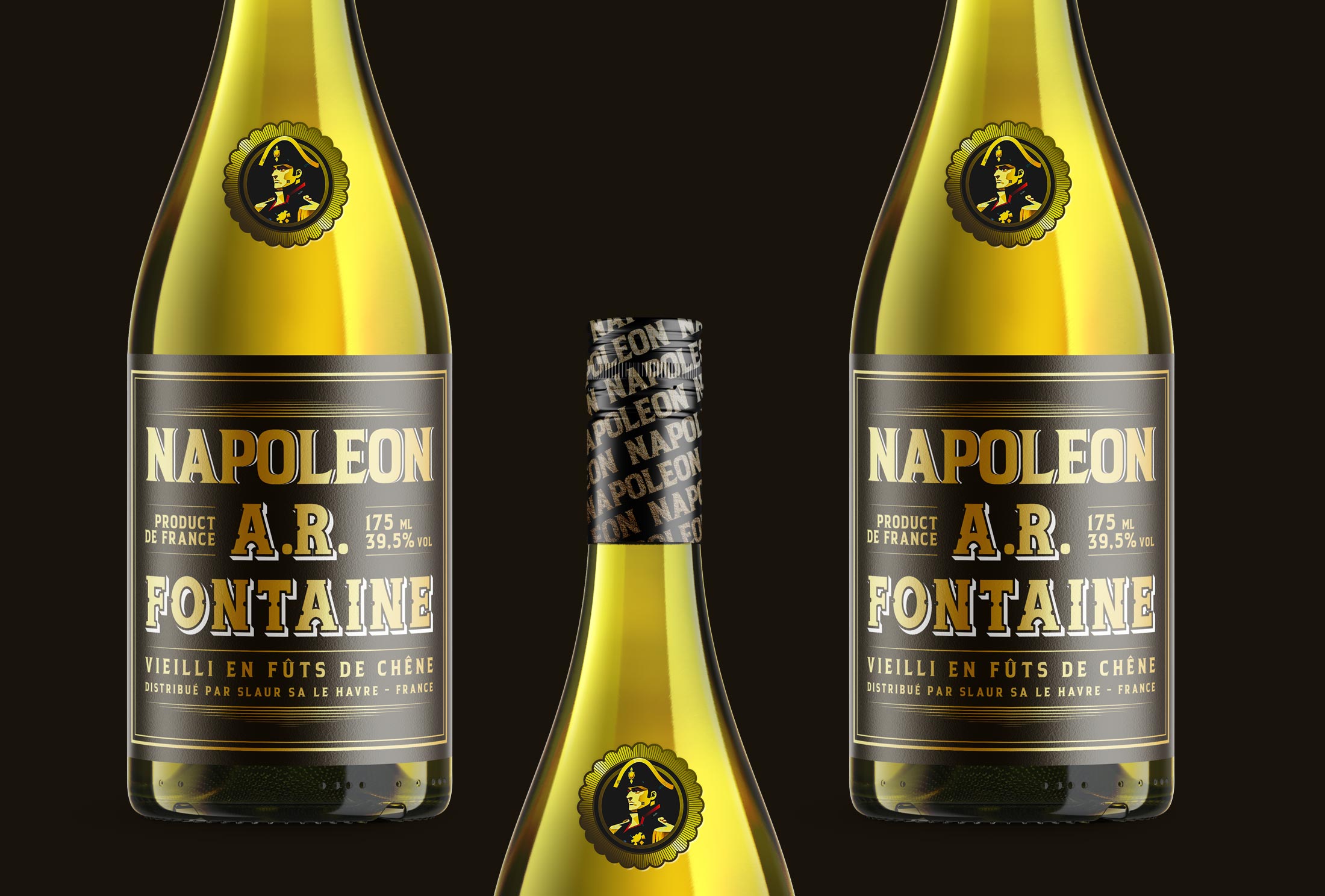 Thực tế: Chúng tôi đã hiện thực hóa ý tưởng qua hai phiên bản nhãn chai tinh xảo. Đặc biệt, phiên bản nhãn đen với sự kết hợp quyền lực giữa nền đen huyền bí và các chi tiết vàng ánh kim đã tạo nên một vẻ ngoài đắt giá. Kiểu chữ cổ điển và bố cục cân đối khẳng định một sản phẩm có chiều sâu lịch sử và chất lượng vượt trội.