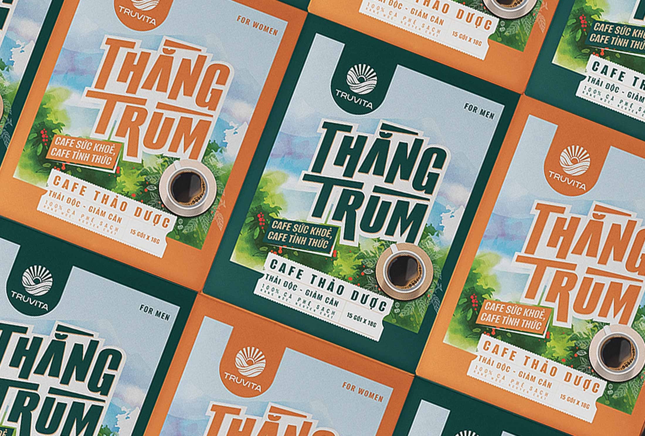 Kết quả đạt được: Bao bì đã định vị thành công Thằng Trùm là một thương hiệu “lifestyle coffee” độc đáo. Thiết kế không chỉ gây ấn tượng thị giác mạnh mẽ tại điểm bán mà còn truyền tải xuất sắc thông điệp kép: mạnh mẽ, sành điệu bên ngoài nhưng vẫn quan tâm, chăm sóc sức khỏe từ bên trong, thu hút chính xác tệp khách hàng mục tiêu.